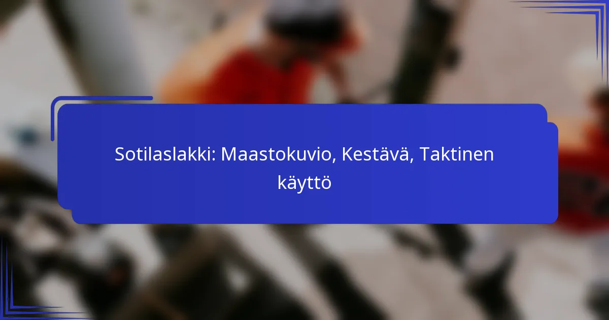 Sotilaslippikset on suunniteltu mukavuutta ja hengittävyyttä silmällä pitäen, mikä tekee niistä sopivia pitkäaikaiseen käyttöön erilaisissa ympäristöissä. Niissä on yleensä naamiointikuviot, jotka auttavat sulautumaan ympäristöön, parantaen huomaamattomuutta. Taktiset kypärät puolestaan priorisoivat suojaa, ja ne on usein valmistettu edistyneistä materiaaleista, jotka kestävät iskuja ja tarjoavat ballistista vastustuskykyä.
