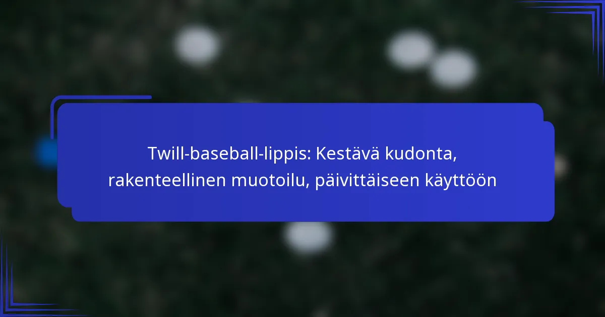 Valitessasi twilli baseball-lippistä, keskity kestävyyteen, istuvuuteen, säädettävyyteen ja tyyliin. Nämä ominaisuudet varmistavat, että lippis kestää päivittäistä käyttöä ja täydentää henkilökohtaista tyyliäsi sekä tarjoaa mukavuutta.